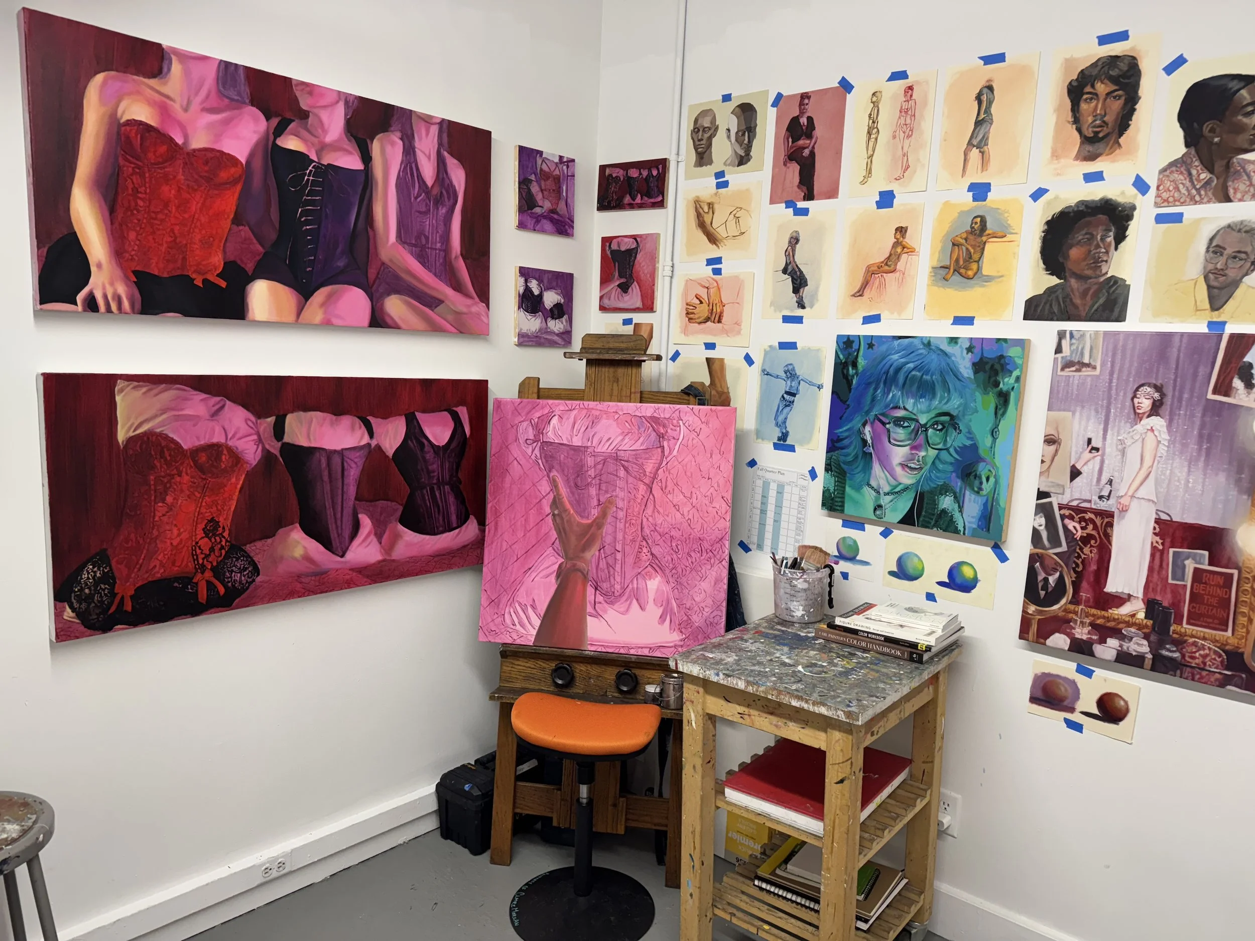 She is a graduate of the Maine College of Art & Design pre-college program (2019). Exhibitions include the SCAD Fine Arts Showcase (2024, 2025). In addition to her work as a painter, she has been employed as an associate designer on over eleven live theater productions (2022-2024) and as a costume designer for four productions (2022-2026), in both live theater and independent film. She is currently pursuing a BFA in Painting with a minor in Costume Design from the Savannah College of Art and Design, with an expected graduation date of 2026.